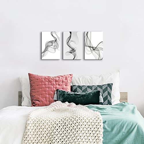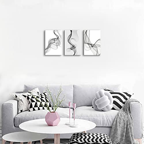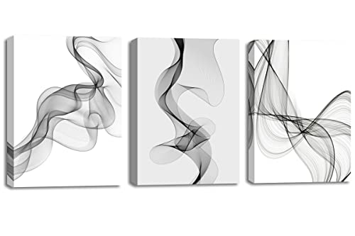 CANVAS ART SIZE: Abstract black and white line canvas wall art print painting size 12″x16″ x3pcs (30x40cm x 3 panels), Total 3 pieces / a set.