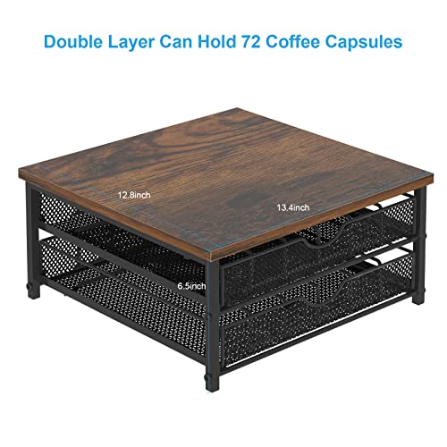 【Dimension & Storage】: The size of the coffee pod holder is about 13.4”L x 12.8”W x 6.5”H . The Coffee Pod Storage Drawer is compatible with K Cups and will hold up to 72 of your favorite pods. Allowing you to neatly organize your coffee and find them according to your taste, brand, or mood.
