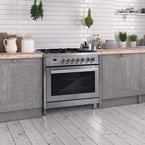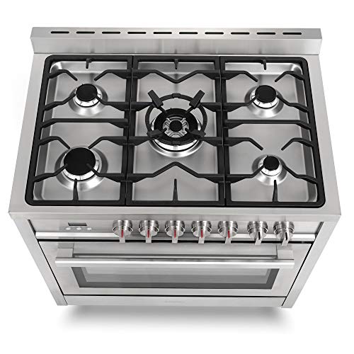 Specification: COSMO F965 36 in. 220/240V Dual Fuel Range with 5 Gas Burners, Electric Convection Oven with 3.8 cu. ft. Capacity, 8…